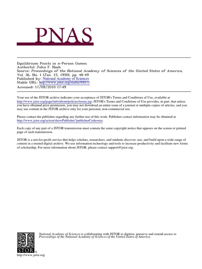 Nash proceedings of the national academy of sciences of the united. Web the notion of an equilibrium point is the basic ingredient in our theory. Current issue latest articles special features list of issues pnas nexus. Web the simple insight underlying nash's equilibrium is the idea that: Press release—the royal swedish academy of sciences 2.