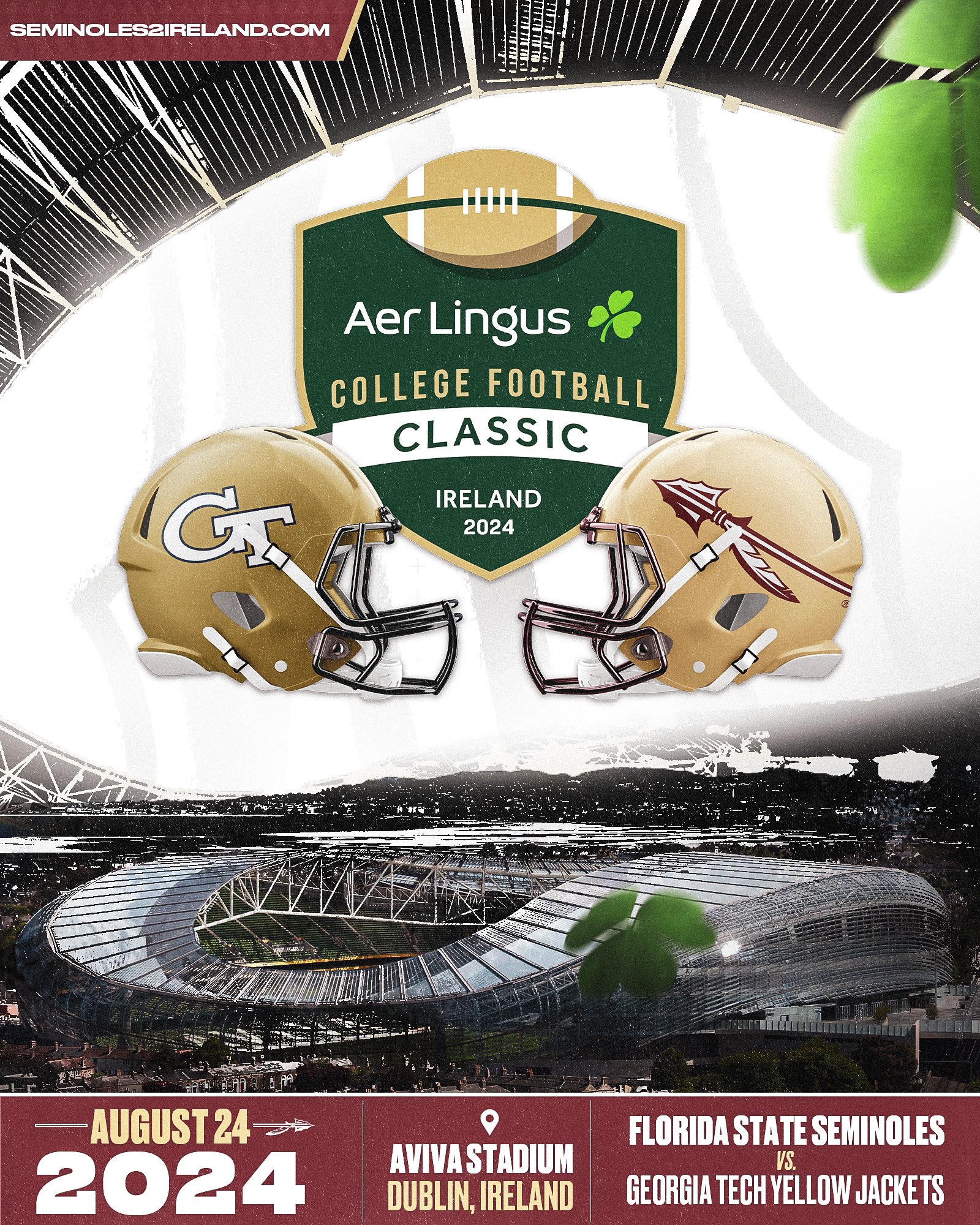 Web florida state football is celebrating st. Web usatsi florida state will play its first game outside of the united sates in program history as it travels to dublin, ireland, to face off against georgia tech to open. Game tickets are currently only available through official travel and hospitality packages. Web the florida state seminoles will face georgia tech on sunday, aug. Florida state seminoles ncaaf game from november 11, 2023 on espn. Web florida state officials see a chance for the school to grow its brand when the seminoles travel to dublin, ireland, to open the 2024 football season against georgia. 24, 2024 aer lingus college football classic against georgia tech at aviva stadium has already drawn tremendous interest from. Web florida state and georgia tech will open the 2024 football season in dublin, ireland, in the aer lingus college football classic, the atlantic coast conference. Web the recent announcement that florida state will open the 2024 season vs georgia tech in ireland has garnered some intense reactions from fsu fans; Georgia tech and florida state university have been revealed today as the. Web florida state will open the 2024 football season in dublin, ireland, against georgia tech as part of the aer lingus college football classic on aug. Web the university announced on march 15 that the fsu football team will be traveling to dublin, ireland to kick off the 2024 season. Last week, a delegation from ireland led. Web game to be played at aviva stadium. For the first time in program history, the seminoles will play a game outside the united states, opening the.