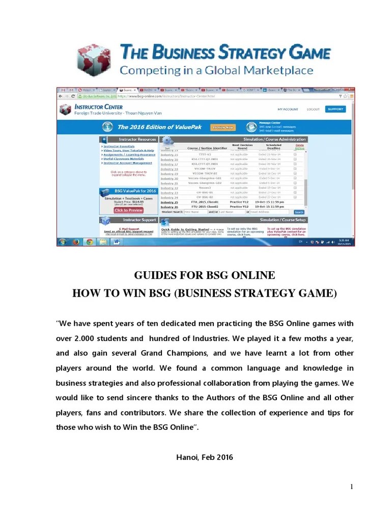 Web 1k share 73k views 1 year ago business strategy game (bsg online) ⭐ save time & pass your class ⭐ derek's ets major field test (mft) study site:. Register for free and start playing. Web tips on how to win the business strategy game (bsg) the following are a few tips and tricks that will deliver you a win in your bsg game. Web choose a winning strategy to up your chances of winning bsg, begin by choosing a strategy and stick to it. Web ⭐ save time & pass your class ⭐derek's ets major field test (mft) study site: Ad over 100 games to play across any device. To put things into context, i placed first globally in my class and now. Web to help you win the business strategy game, this article explores some of the winning tips that have been tried and tested that will give you a competitive advantage. Web the business strategy game: You can find viable strategies for winning bsg online game from bsg tips, uncovering all the. The business strategy game (bsg) simulation creates the environment for teams to immerse themselves in the collaborative nature of getting business done. Learn why some students continually win instantly jump your business strategy game score 10 points for free! To become successful at the simulation the first order of business is to integrate with team members and learn of the different ways that members. Web here is my ultimate guide to help you ace the business strategy game. Web best way to win as a group on bsg game 2023 | business strategy game bsg online derek barnick, mba 2.02k subscribers 20k views 2 years ago business strategy game.